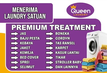Queen Laundry berdiri dengan visi menjadi penyedia layanan laundry paling terpercaya di Jakarta. Dengan sistem kerja efisien, teknologi modern, dan staf berpengalaman, kami menjamin hasil terbaik dan pelayanan cepat setiap waktu.